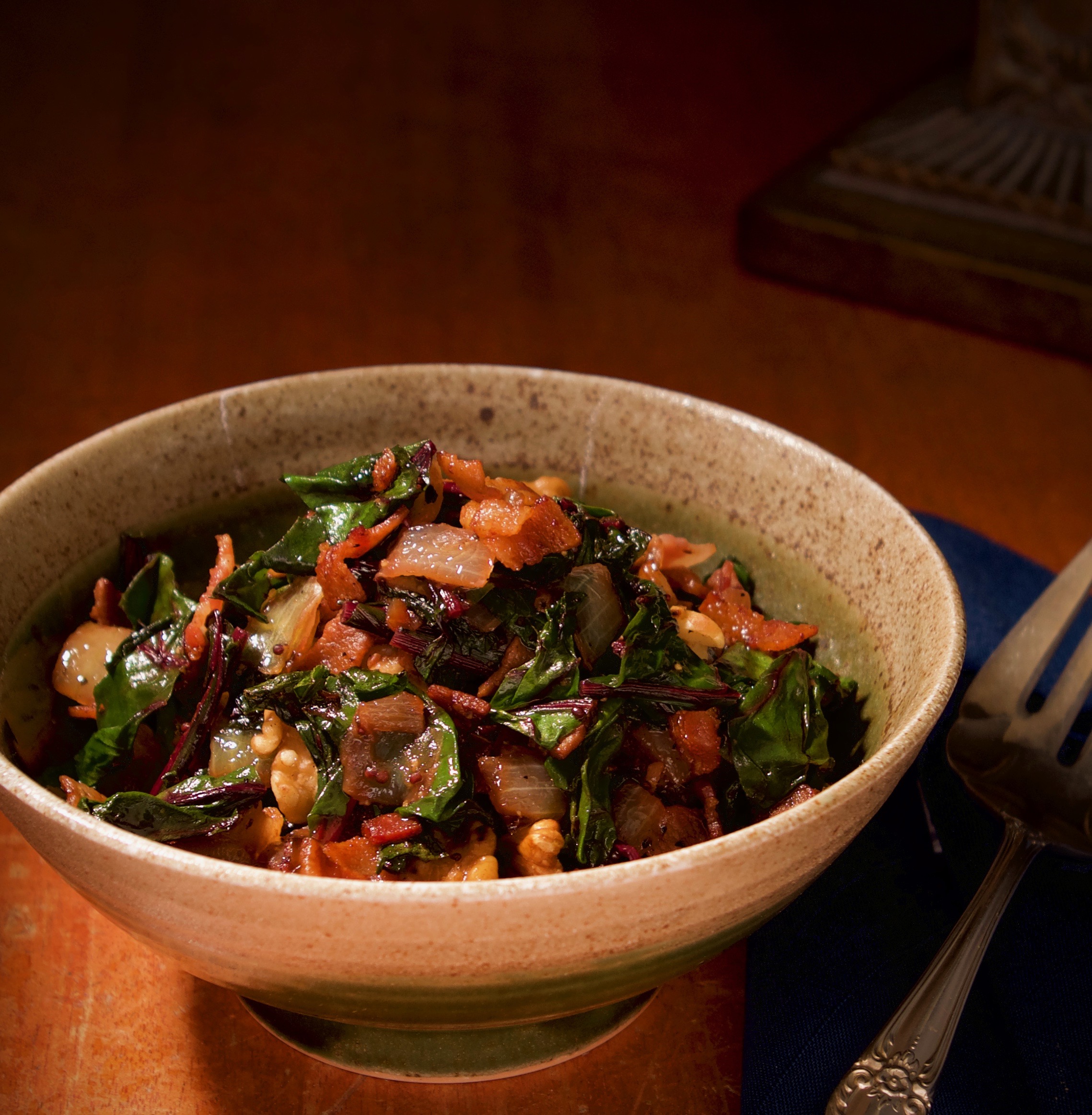cooked Beet Green with Walnuts and Onion
